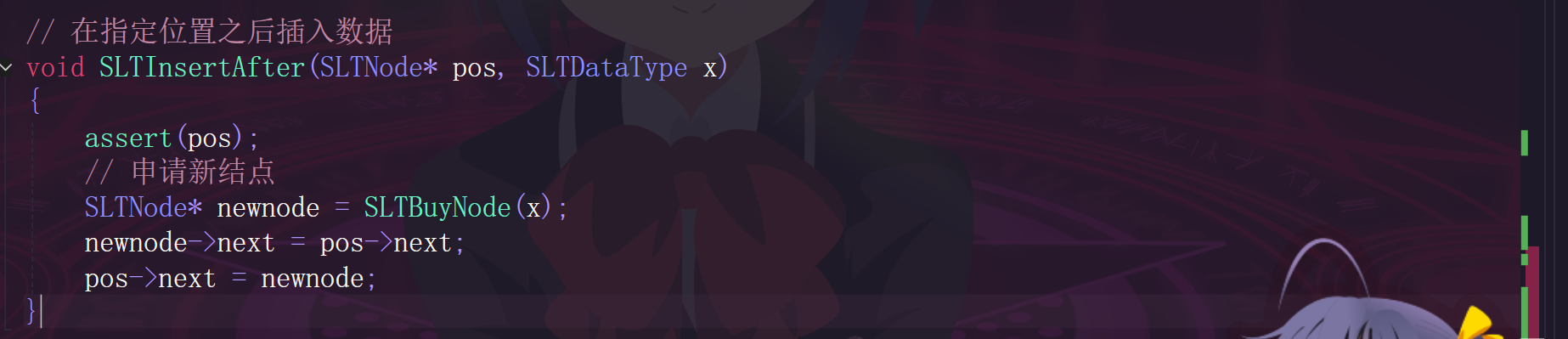 void SLTInsertAfter(SLTNode* pos, SLTDataType x)