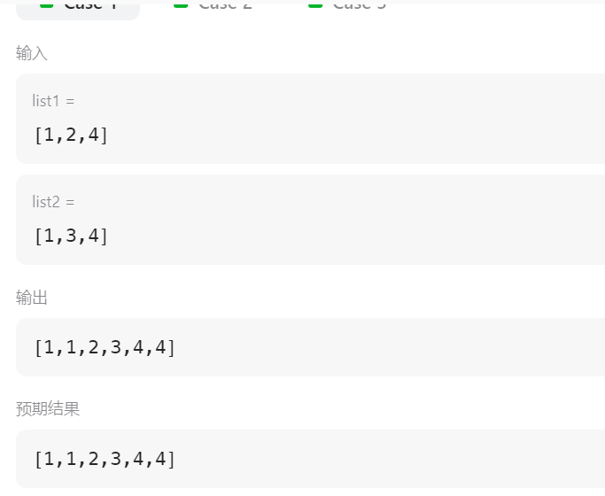 在开头增加了list1和list2的判别自测示例就可以通过。