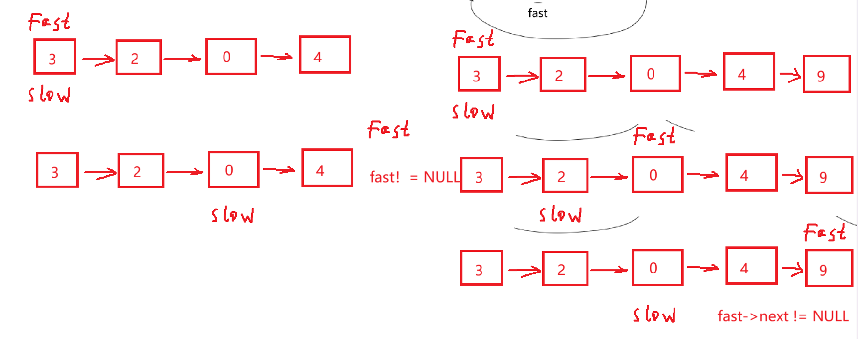 通过我们判别不是环链表,我们就可以得出while循环条件。