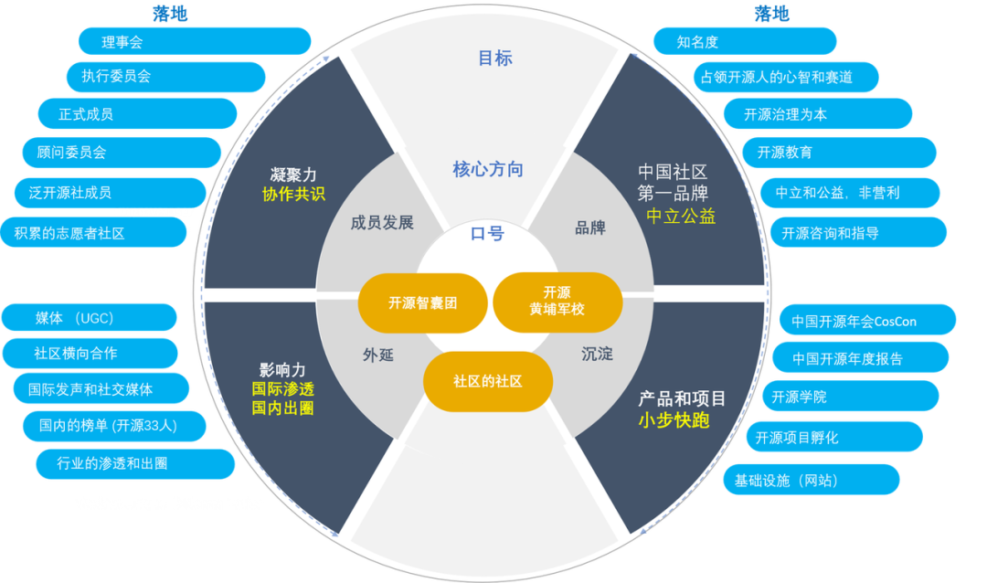 开源社(英文名称为"KAIYUANSHE®")成立于 2014 年,是由志愿贡献于开源事业的个人志愿者,依 "贡献、共识、共治" 原则 所组成的开源社区。开源社始终维持 "厂商中立、公益、非营利" 的理念 ,以 "立足中国、贡献全球,推动开源成为新时代的生活方式" 为愿景 ,以 "开源治理、国际接轨、社区发展、项目孵化" 为使命,旨在共创健康可持续发展的开源生态体系。