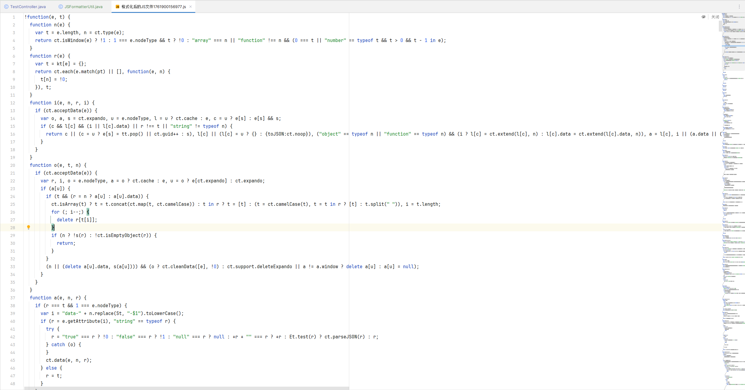 本文介绍了一个使用Google Closure Compiler库实现JavaScript代码格式化的工具类。主要内容包括:1) 添加Maven依赖配置;2) 提供完整的JSFormatterUtil工具类,包含代码格式化和移除模块标识功能;3) 给出测试示例,展示如何获取网络JS文件并进行格式化处理。该工具能自动将压缩的JS代码转换为标准格式,支持错误检测和异常处理,格式化失败时返回原代码。文中还提示了常见问题,如自动引入错误包的问题解决方法,并对比了格式化前后的代码效果差异。