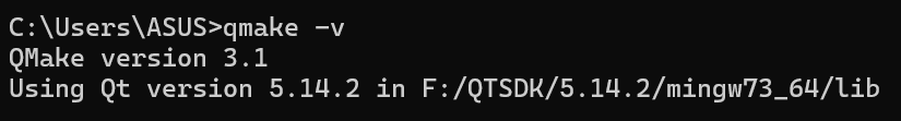 - 如果输出 Qt 的版本信息(如 "QMake version 3.1 Using Qt version 5.14.2 in D:\Development_Software\Qt\5.14.2\mingw73_64\lib"),说明环境变量配置成功。