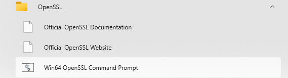 然后在程序菜单中点击 Win64 OpenSSL Command Prompt