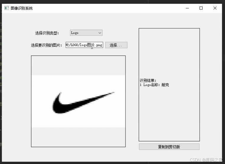 在界面设计层面,PyQt5 的优势得到充分发挥:整体界面风格简洁统一,各识别功能模块的布局保持一致性 ------ 均包含 "识别类型选择下拉框""图片预览区""结果展示区""操作按钮区(上传、识别、保存)",用户无需反复适应不同功能的界面逻辑;针对不同识别类型,界面还做了针对性优化:如证件类识别(身份证、驾驶证、营业执照)的结果展示区采用 "标签 - 内容" 的列表式布局,清晰呈现多字段信息;车型、植物、动物识别则会在结果区附带简要的类别说明;Logo 识别界面会标注品牌归属,让识别结果更具参考价值(如上传图片 - 检测识别 Logo 界面的结果呈现形式)。