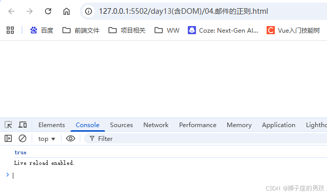 console.log(emailReg.test(email));// true(即:字符串是符合电子邮件校验规则的,输出为 true)