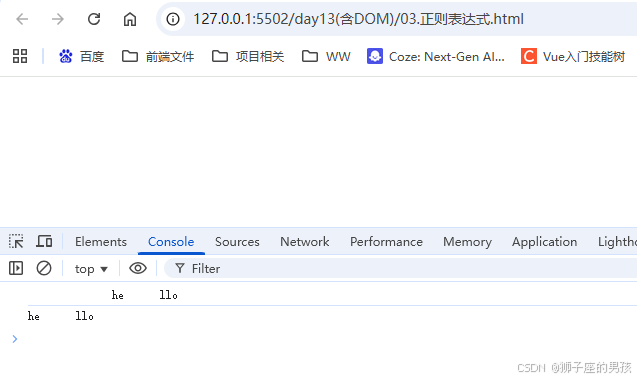 - 其五、代码为:正则与字符串联用(split(),search(),match(),replace())