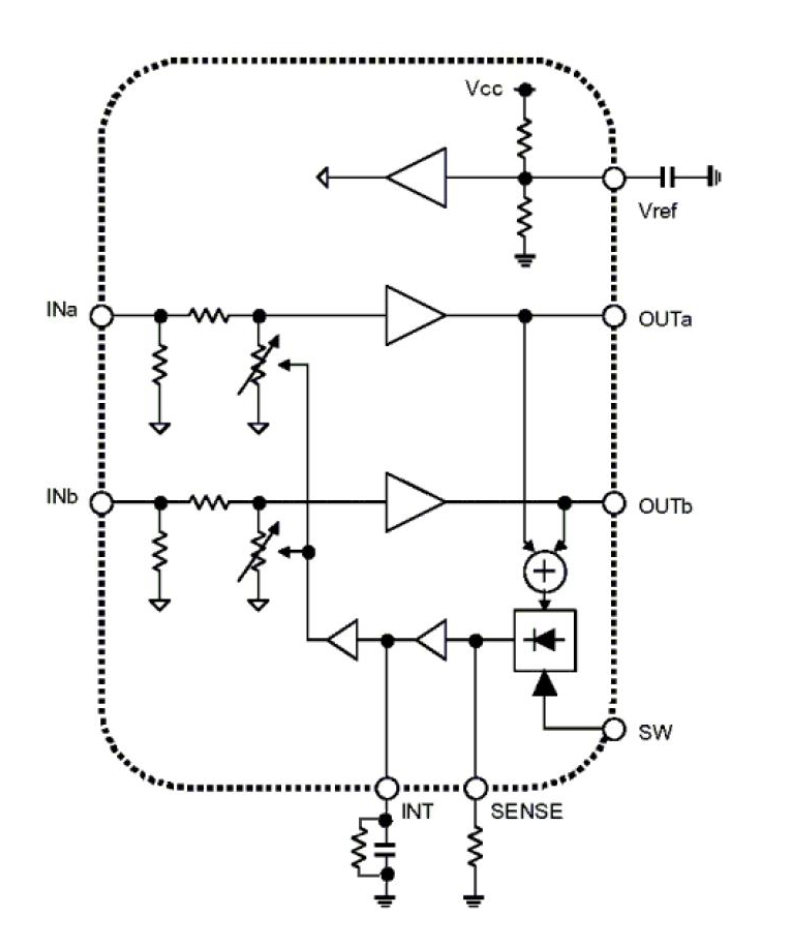 内部结构:压控放大器(输入、输出信号通道)+反馈环路(检测信号大小并生成控制电压)。