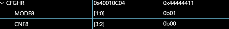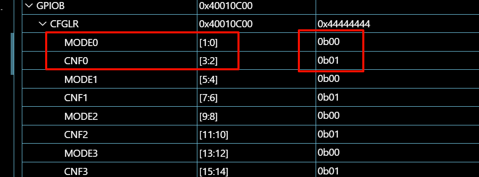 debug查看CFGLR 配置低位寄存器