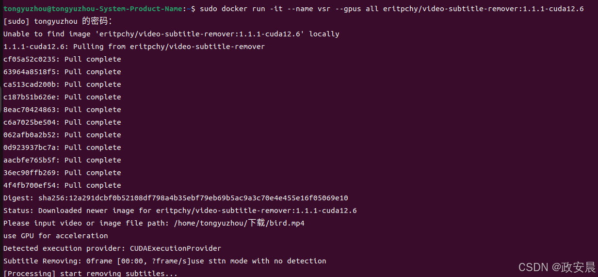 docker run -it --name vsr --gpus all eritpchy/video-subtitle-remover:1.1.1-cuda12.6