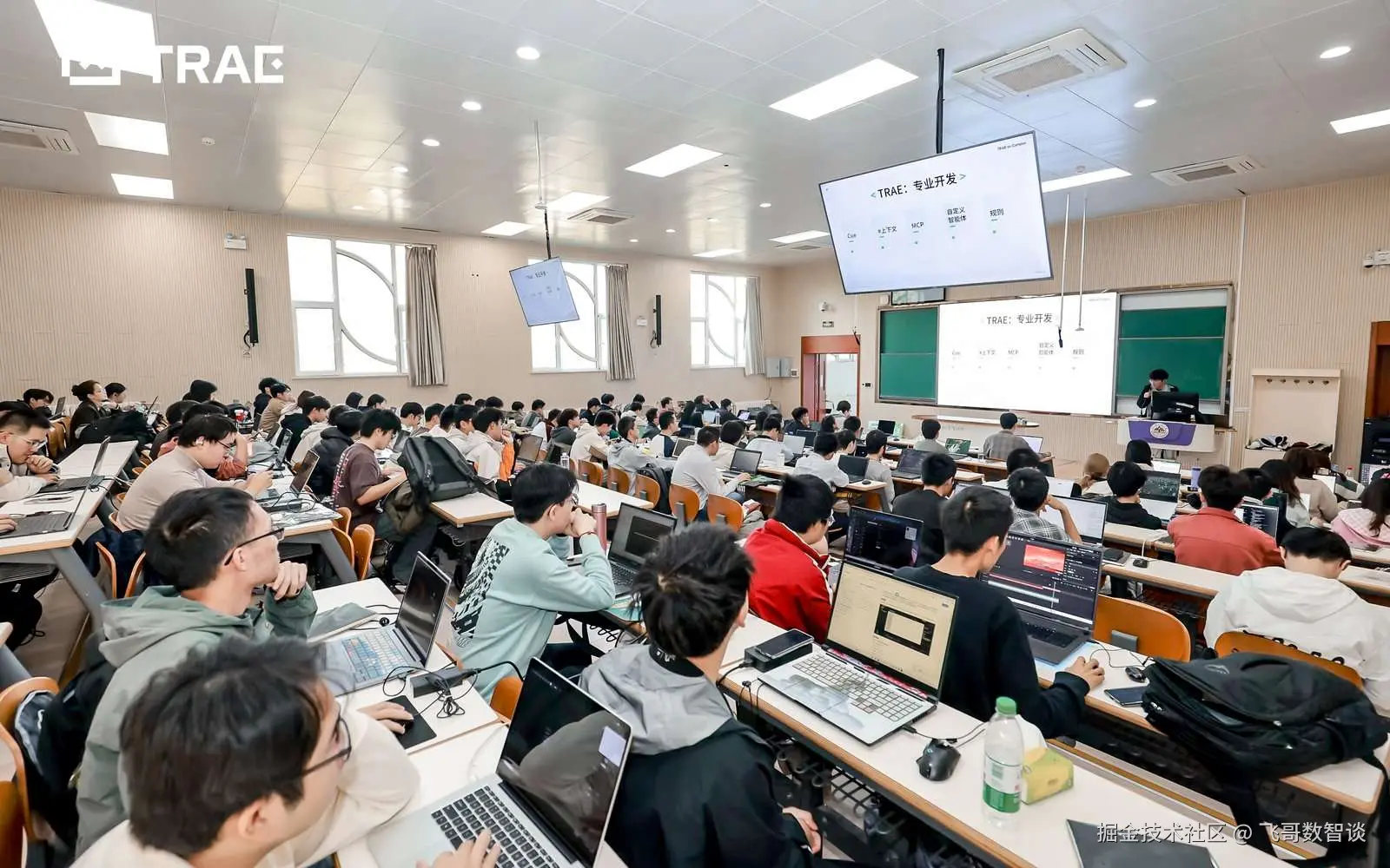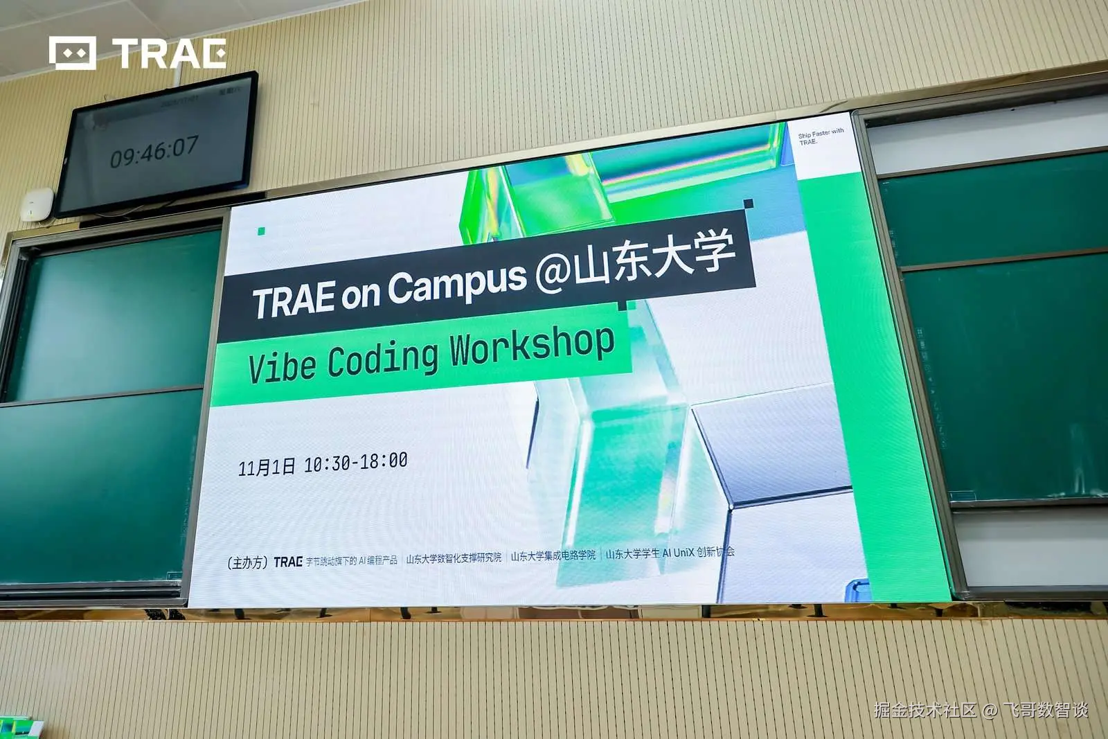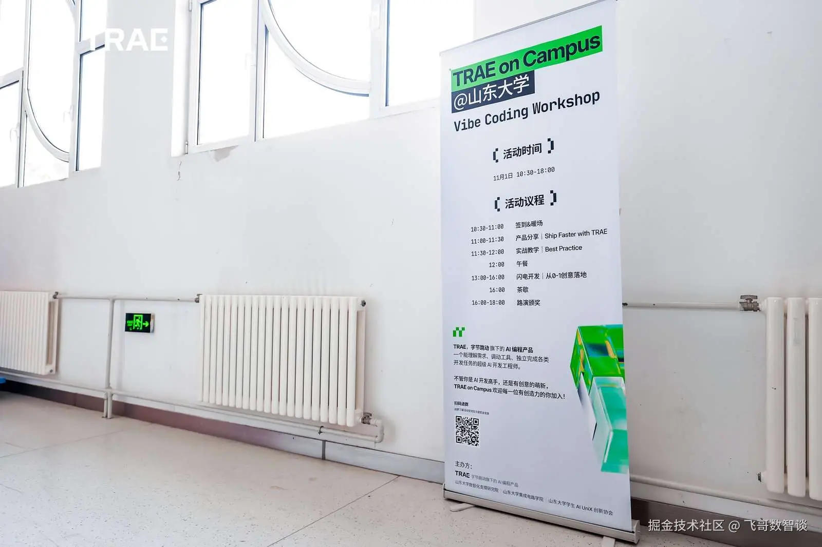 今天,字节 TRAE 和山大数智化支撑研究院在山大中心校区举办 TRAE on Campus 活动,有幸受邀作为比赛评委,并为"现场闪电开发"环节提供 AI 编程指导。