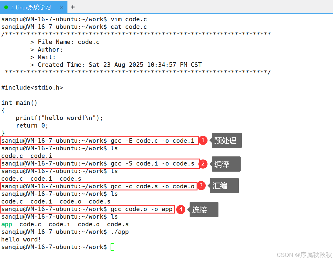 bash# 执行 make 后,实际依次触发的编译相关命令 gcc -E myproc.c -o myproc.i gcc -S myproc.i -o myproc.s gcc -c myproc.s -o myproc.o gcc myproc.o -o myproc