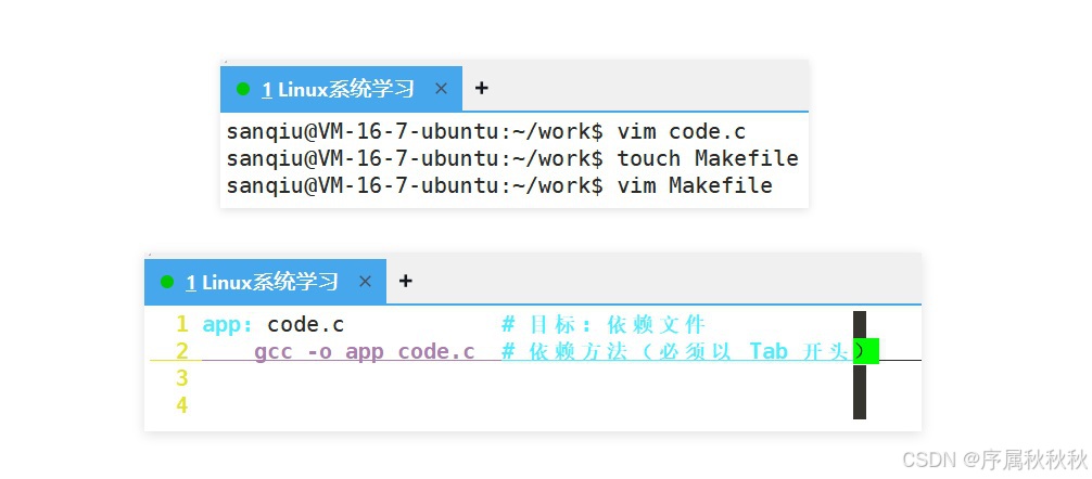 makefilemyproc: myproc.o # 第一个目标 → 最终目标 gcc -o myproc myproc.o myproc.o: myproc.c gcc -c myproc.c此时,