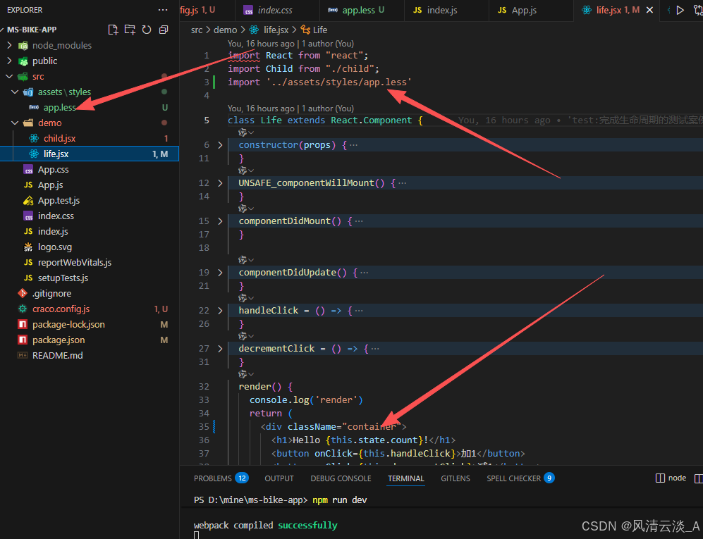 我们在项目中使用的css预处理语言是less,所以直接这样配置使得less文件生效