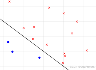 - 直线上方的样本(红叉)满足 x1+x2>3,即 z>0,模型预测 y=1;