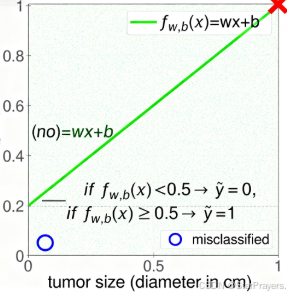 - 如果 fw,b(x)<0.5,预测 y^=0(肿瘤为良性,"no");