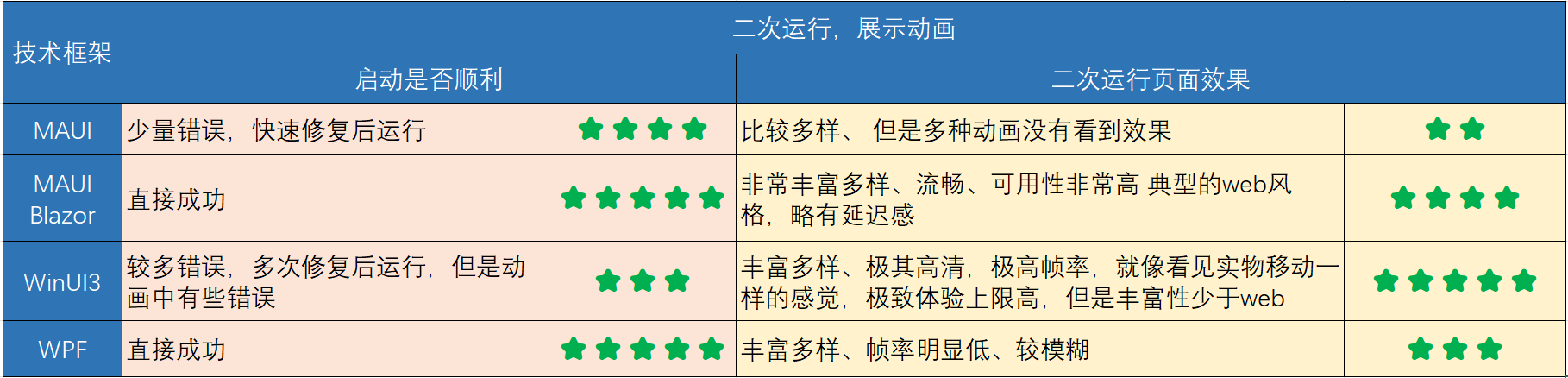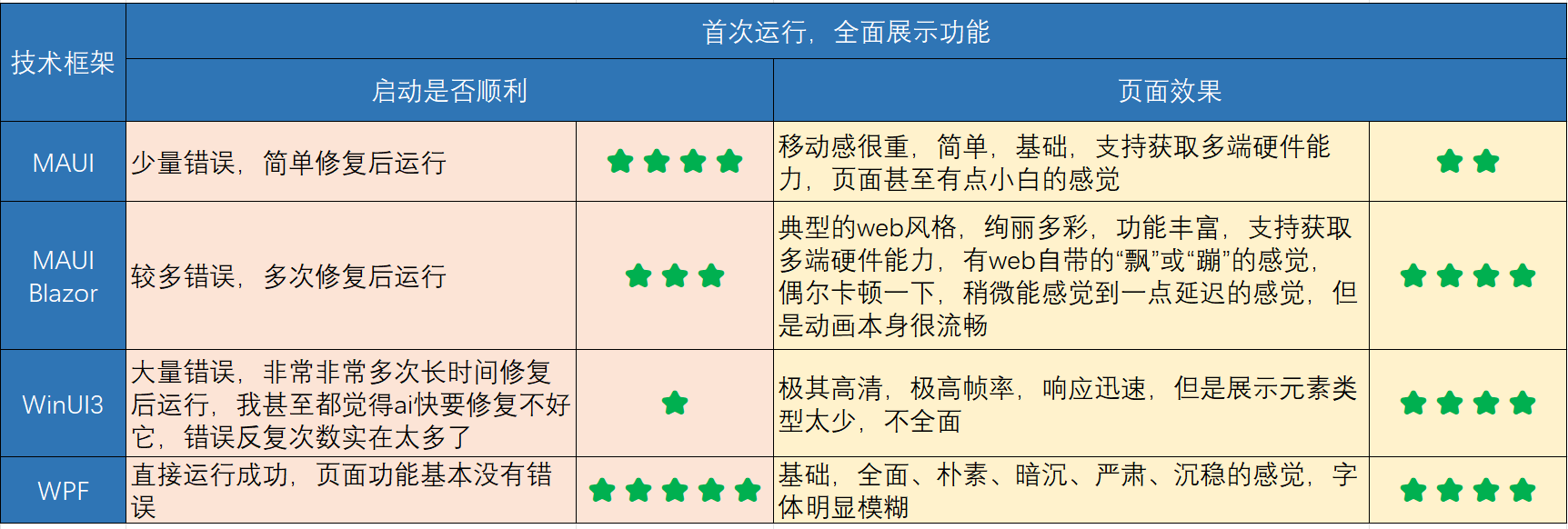 ➤ 排名第一的是 MAUI Blazor 和 WPF,这两个都是一次性处理成功;
