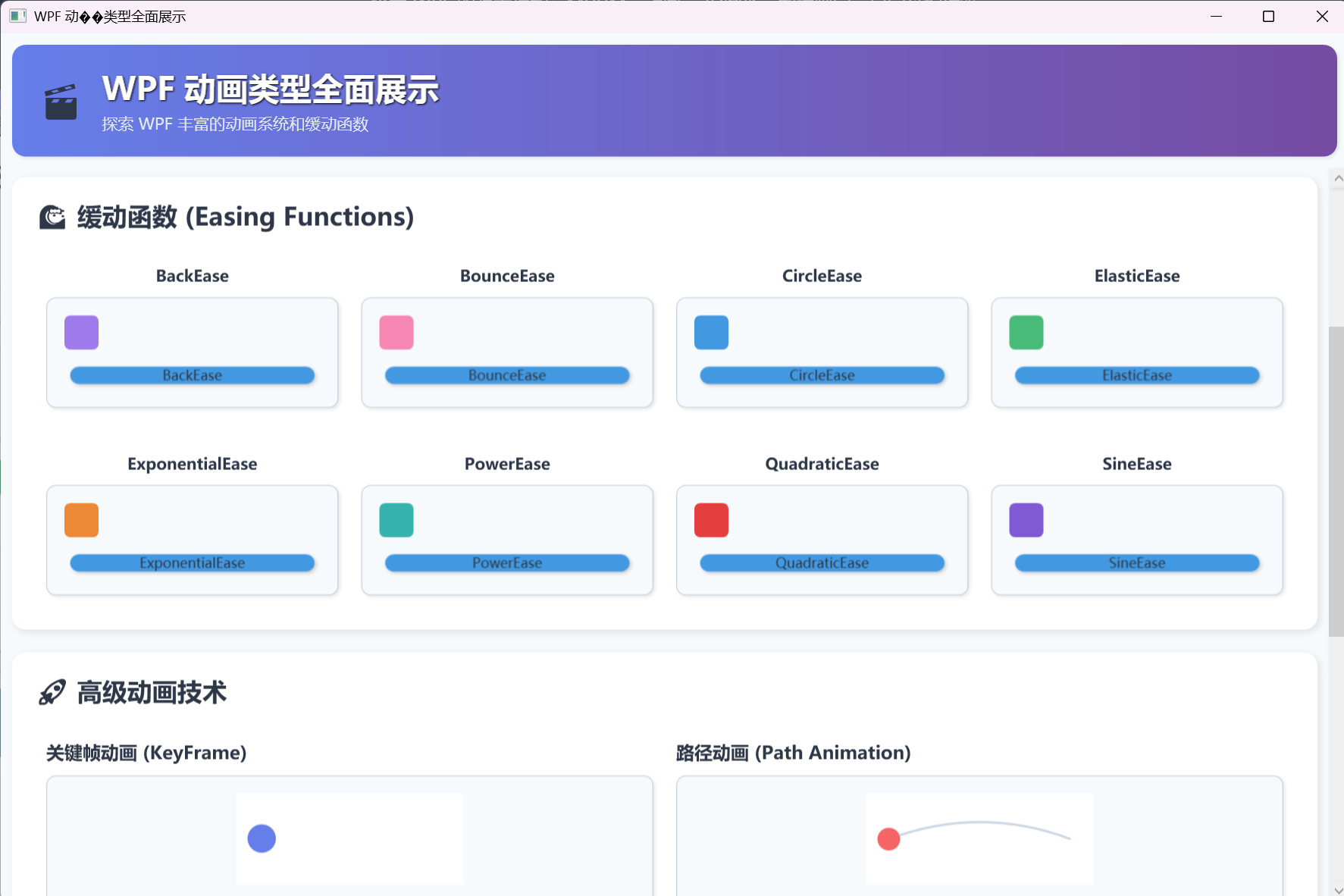 ➤ 排名第三的是 WPF,它支持的动画类型其实是丰富多样的,但是在动画表现力上有一个非常大的缺点,就是帧率明显非常低,而且比较模糊,肉眼可见地感觉到了动画卡顿: