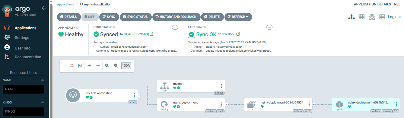 启用 ArgoCD 的自动同步策略后,只要你将此变更推送到 GitHub 仓库,ArgoCD 就会检测到该更新,并自动将其应用到你的 Kubernetes 集群中。