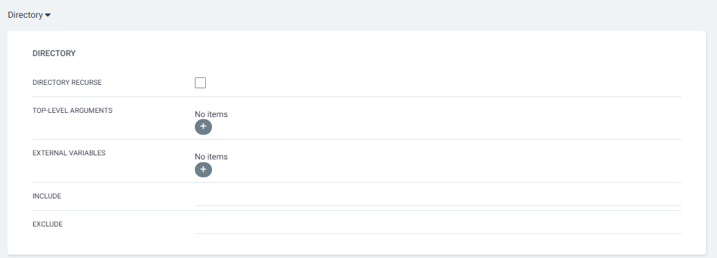 其他如 TOP-LEVEL ARGUMENTS、EXTERNAL VARIABLES、INCLUDE、EXCLUDE 等,在当前场景下若没有特殊参数或文件包含 / 排除需求,保持默认即可。