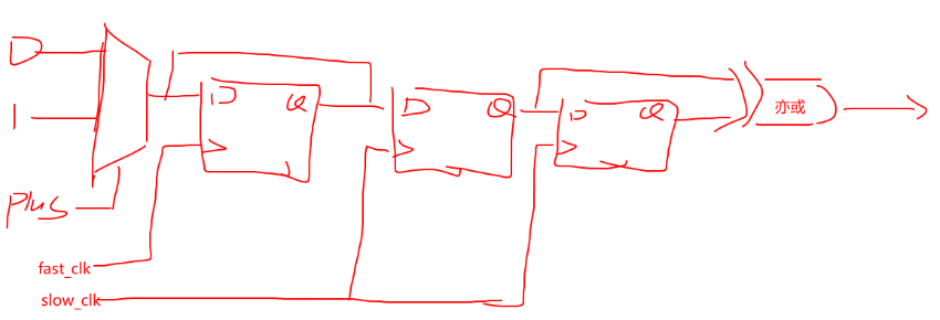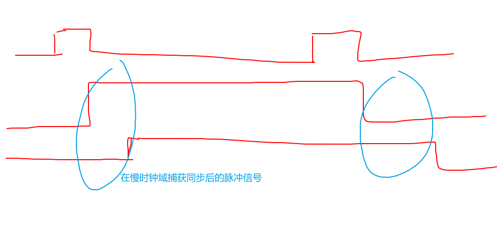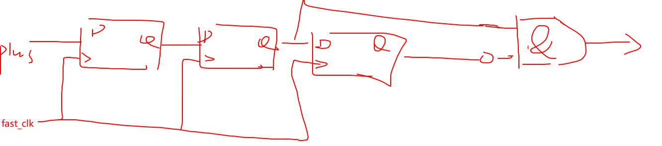 慢时钟到快时钟,在快时钟侧存在对同一个慢时钟数据的多次采样。 可以使用同步器+边沿检测,实现对快时钟侧的脉冲采样。