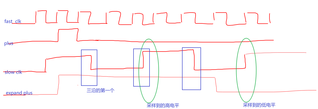 为了实现任意跨度的快时钟到慢时钟间脉冲采样。 可以快时钟的plus 转为level 信号。在慢时钟侧,对level 采样并捕获边沿。