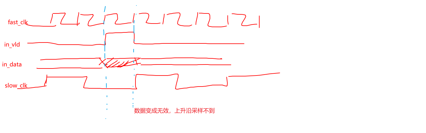 快时钟到慢时钟的电平,若2个时钟的频率跨度很大,直接跨时钟,在慢时钟侧有概率会丢掉快时钟传递过来的数据 。