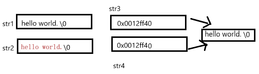 str1和str2两个数组名是首元素的地址,代表了两个独立的空间