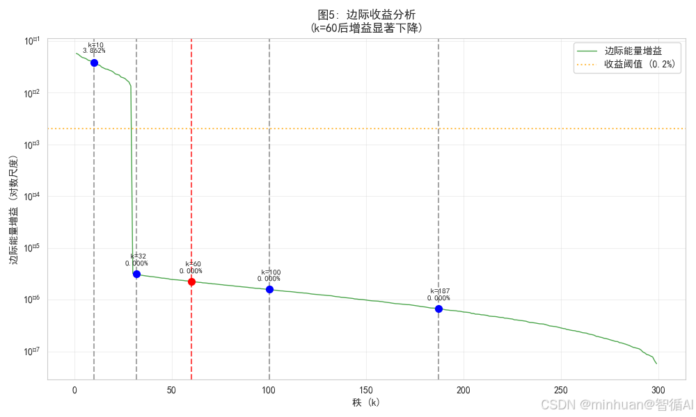 奇异值的能量累积曲线通常存在明显的拐点,在拐点之前能量快速累积,之后增长缓慢。选择拐点对应的 k 值往往能获得较好的权衡,因为超过这个点后,增加k值所带来的信息收益(曲线斜率)开始急剧下降。