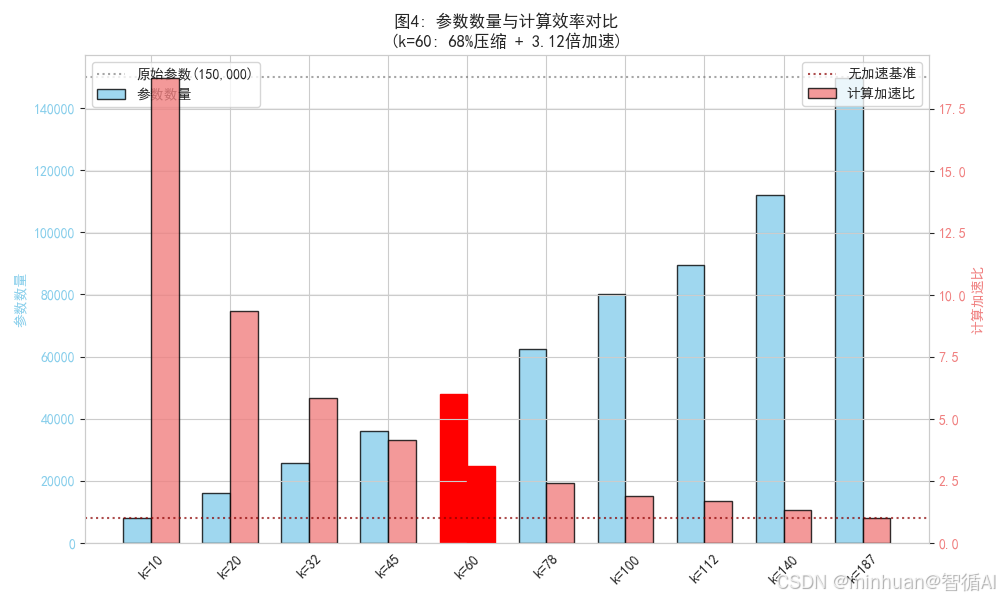 print(f" • 计算加速: {(m*n)/(m*k_final + k_final*n):.2f}×")