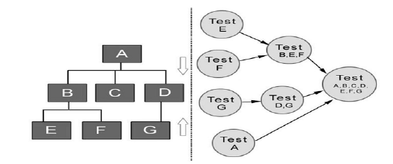 **• 测试内容:**模块之间数据传输、模块之间功能冲突、模块组装功能正确性、全局数据结构、单模块缺陷对系统的影响