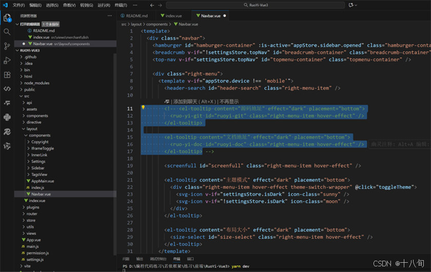 位置:RuoYi-Vue3\src\layout\components\Navbar.vue