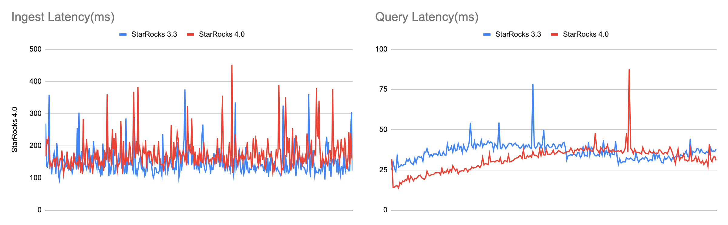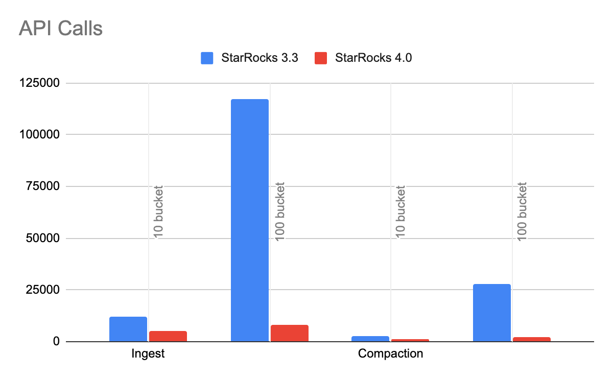 得益于这些改进,StarRocks 4.0 在实时导入与查询场景中表现更为出色。相比 3.3 版本,API 调用减少 70%--90%,导入与查询延迟几乎无变化,部分场景甚至更快。