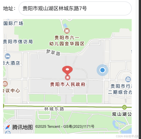 - 注:因为地图服务商问题,引入高德地图api但是显示是腾讯地图