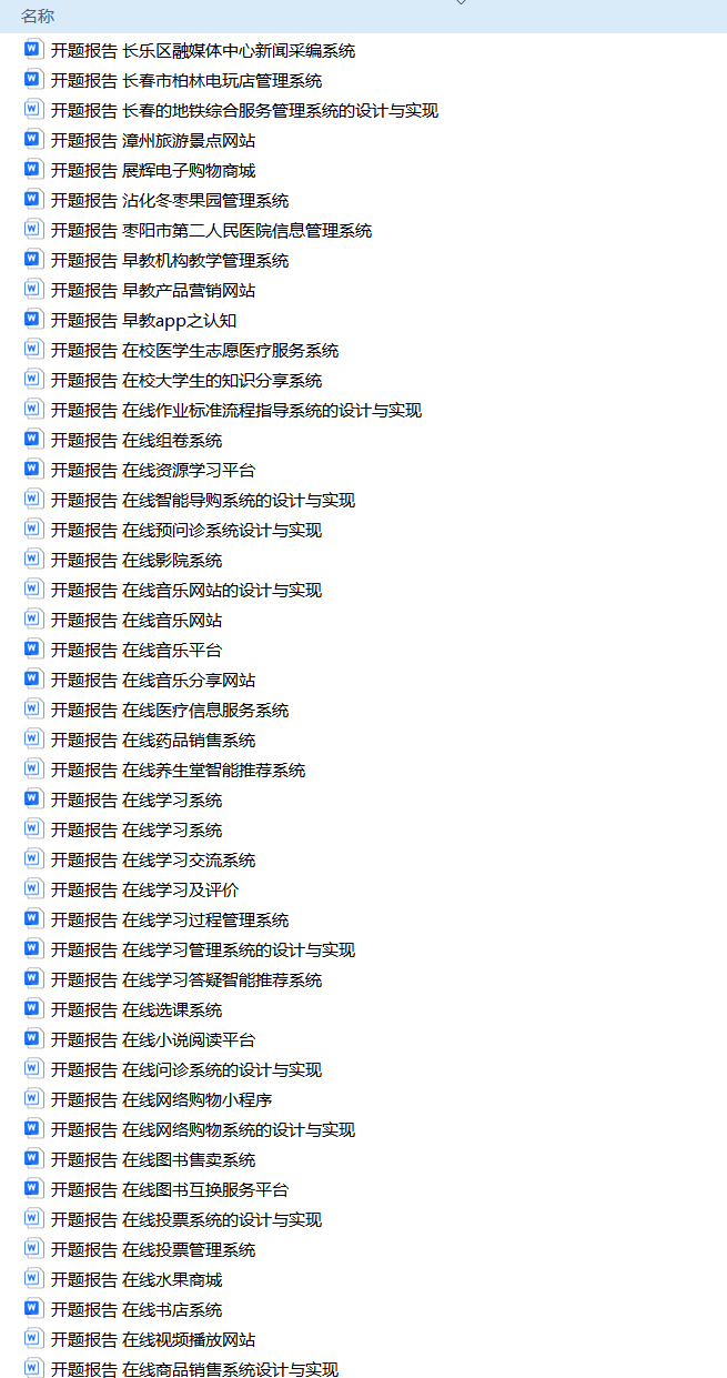 以上是H同学的毕业设计答辩过程,如果你现在还没有参加答辩,还是开题阶段,已经选好了题目不知道怎么写开题报告,可以下面找找有没有自己符合自己题目的开题报告内容,列表中的开题报告都是往届真实的开题报告可参考。