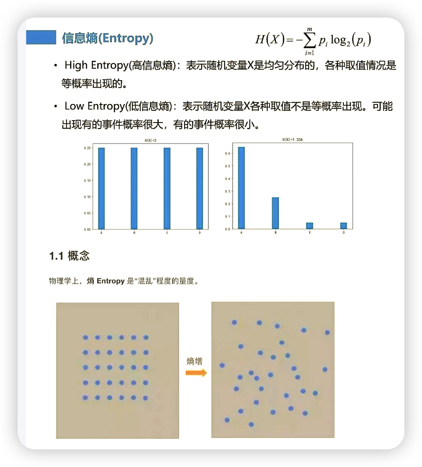 熵越高,数据越混乱,不确定性越大。(例如,一个盒子里有50个红球和50个蓝球,熵最大)