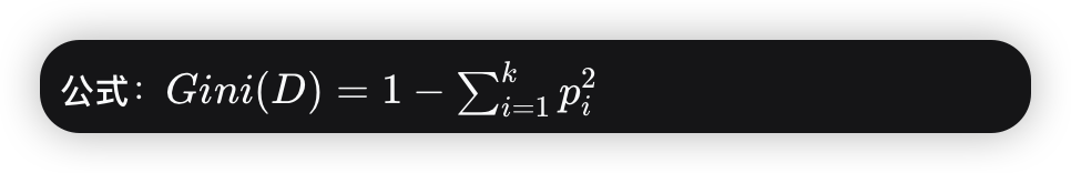 定义:另一种衡量数据不纯度的指标。它表示从数据集中随机抽取两个样本,其类别标签不一致的概率