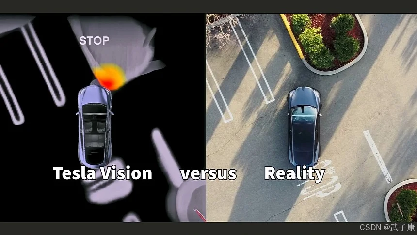 实测对比显示,Tesla Vision生成的3D视图与真实环境高度一致(如下图左侧为车机渲染,右侧为无人机俯视实景),停车过程中的距离判断也颇为可靠。