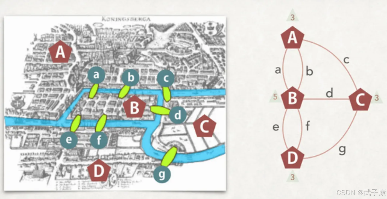 欧拉的解决方案创造性地将实际问题抽象为数学图形: