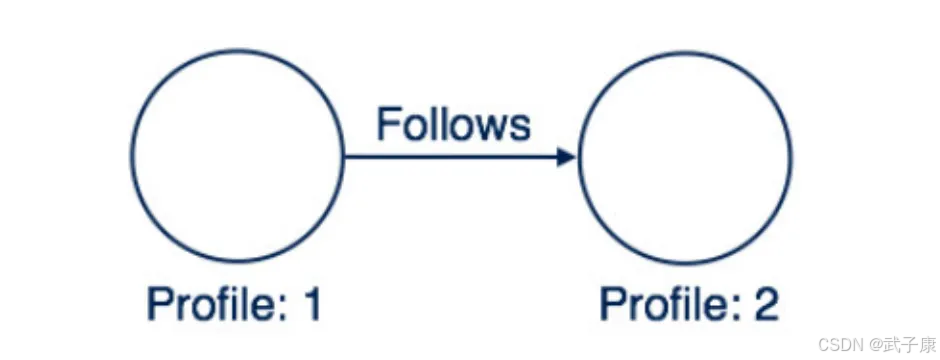 此处两个节点之间的创建的关系名称为"追随",这意味着 Profile1 和 Prolfile2.