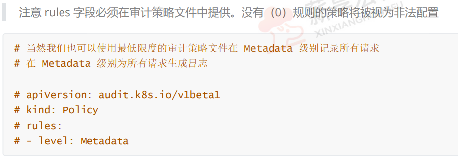 创建审计策略文件创建目录mkdir /etc/kubernetes/audit-logs/、mkdir /etc/kubernetes/audit-policy