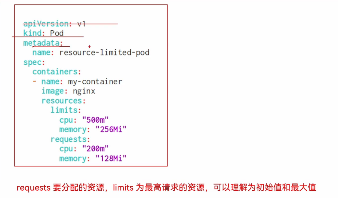 # 第一个 Pod 资源清单 apiVersion: v1 kind: Pod metadata: name: resource-limited-pod spec: containers: - name: my-container image: wangyanglinux/myapp:v1.0 resources: requests: cpu: "200m" memory: "128Mi" limits: cpu: "500m" memory: "256Mi" --- # 第二个 Pod 资源清单 apiVersion: v1 kind: Pod metadata: name: resource-limited-default-pod spec: containers: - name: my-container image: wangyanglinux/myapp:v1.0