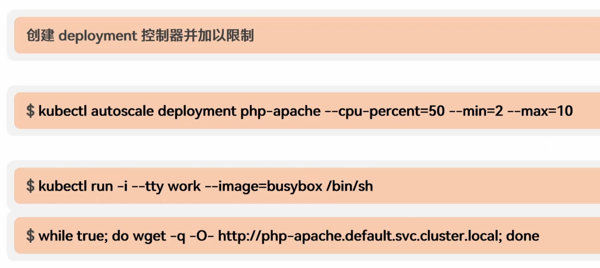 命令 1:kubectl autoscale deployment my-deployment --cpu-percent=50 --min=2 --max=10