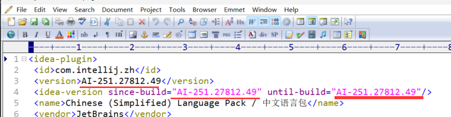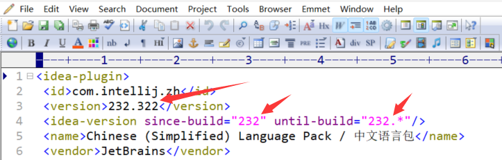 用文本编辑工具修改plugin.xml,将版本号,换完当前Android Studio的版本号: