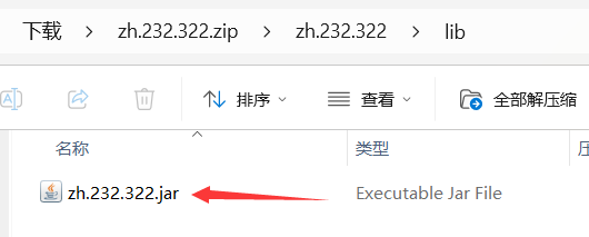 把下载文件zh.232.322.zip中的C:\Users\ThinkPad\Downloads\zh.232.322.zip\zh.232.322\lib\zh.232.322.jar拷贝出来到随便一个文件夹,进行进一步处理