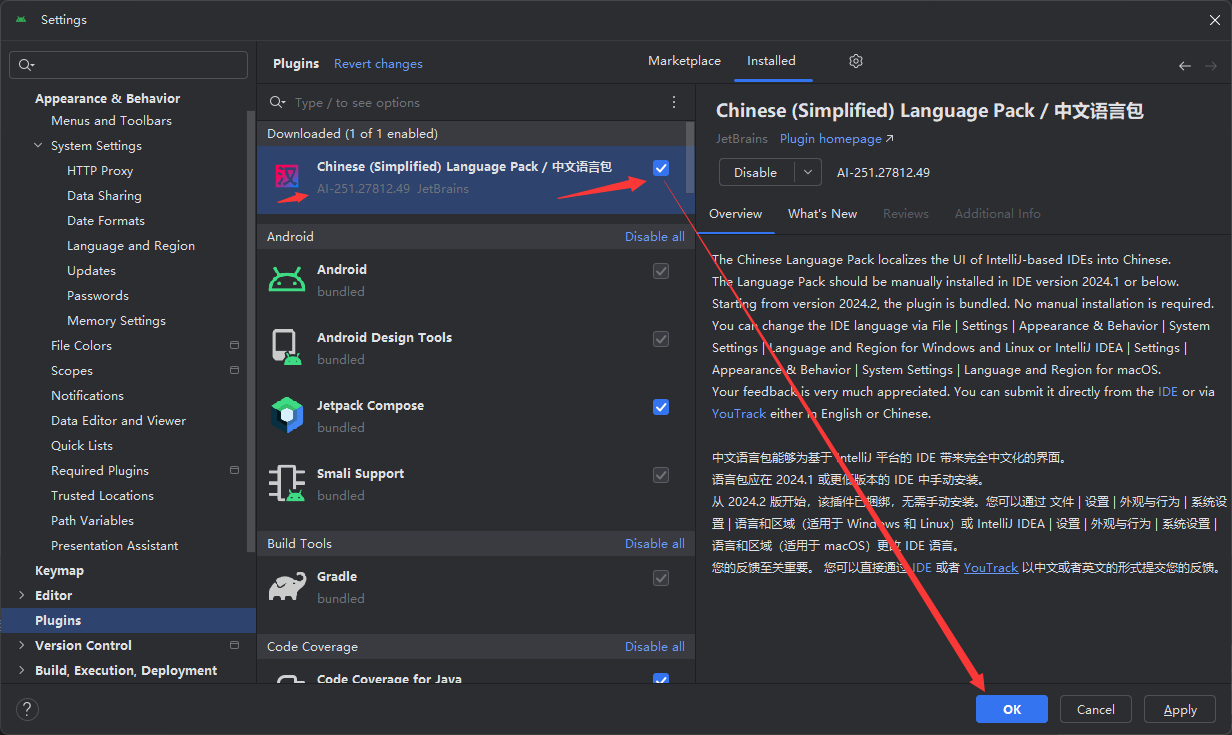 Android Studio的版本在不断升级,IntelliJ老的语言包未来不一定能用。高版本语言包,目前测试有错误,不过也分享出来,说不定未来那天,这种方式就能用了,当然也不排除我错做错误。
