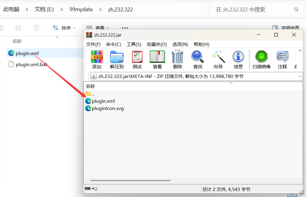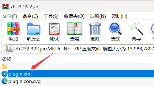 用解压工具如winara打开这个jar包,把其中zh.232.322.jar\META-INF下的plugin.xml解压出来: