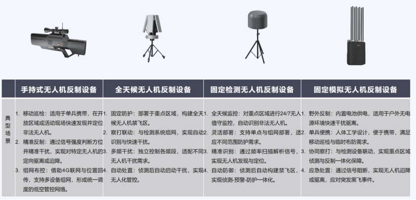 四、无人机反制 设备 :"全域感知 + 智能识别 + 分级反制" 的防护架构