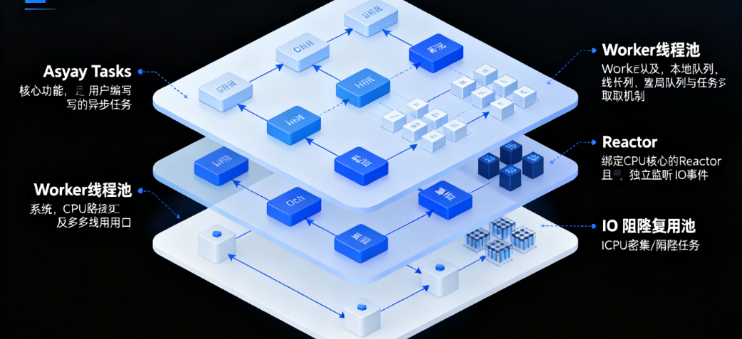 在Rust异步生态中,Tokio是当之无愧的"事实标准"运行时------无论是高并发Web服务(如Axum后端)、高性能消息队列,还是低延迟IO处理,都离不开它的支撑。Tokio的核心竞争力,源于其精心设计的多线程调度架构:它能高效协调IO事件、平衡任务负载、隔离阻塞操作,在充分利用多核CPU的同时,确保异步任务的低延迟执行。