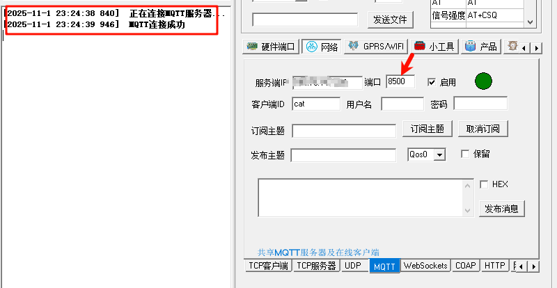 再次使用通信猫连接公网IP和映射出来的端口就能看到可以正常连接,表示穿透成功: