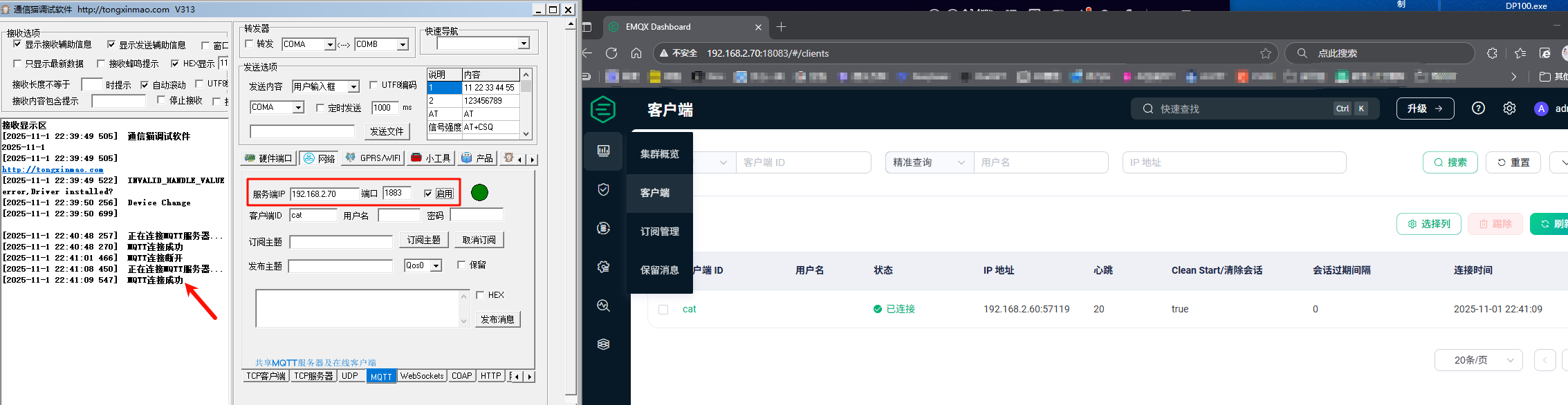 使用通信猫测试软件尝试连接已经可以连接成功了: